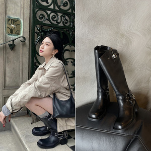 牛皮版靴子长筒靴女厚底今年流行爆款美拉德西部牛仔靴复古骑士靴