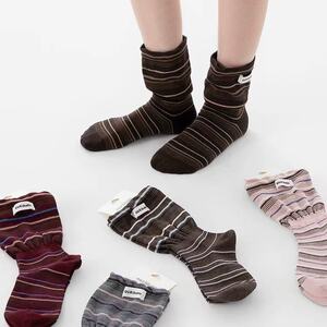 ”松弛拉满“感老钱风!袜子女酒红咖色复古条纹自带堆堆韩系款潮