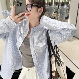2025春秋小爱心宽松同款休闲气质长袖防晒条纹宽松上衣慵懒衬衣