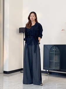0904-173秋装新款高品质高腰阔腿裤西装裤女装大阔腿长款裤长103