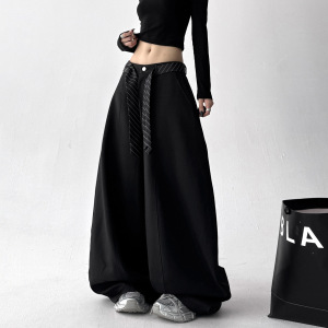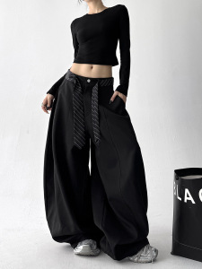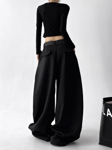 美式高级感褶皱弯刀西裤女裤2025秋季新款阔腿裤宽松垂感休闲裤子