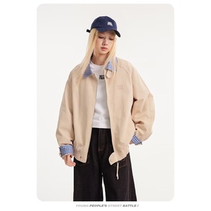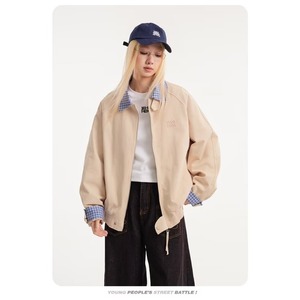 潮流格子拼接夹克外套流行文艺百搭时尚日系简约ins慵懒新款气质