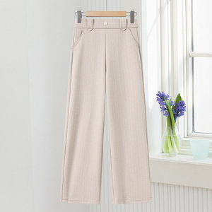 中老年女装秋季直筒裤妈妈装毛呢松紧腰纯色休闲春装高腰显瘦长裤