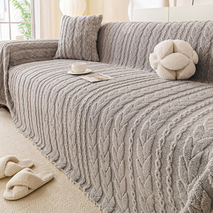 奶油风沙发盖布加绒加厚沙发套罩万能通用垫一片式沙发巾沙发毯子