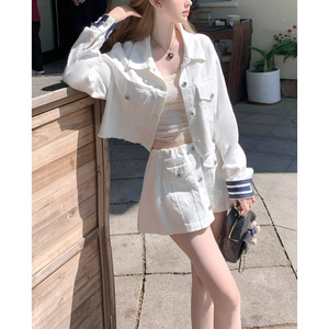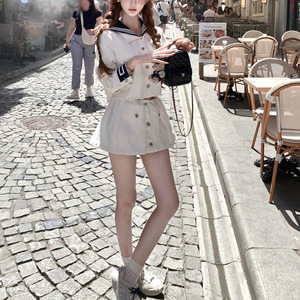 小个子025/fw 青空航线 miu系两色海军风外套纽扣半裙棉质套装秋
