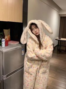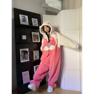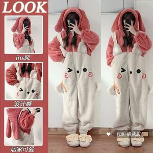 连体睡衣女冬季蓝色小八珊瑚绒加厚2025家居服卡通宿舍冬季保暖