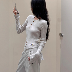 现货~早秋2025新款别致土星刺绣不规则针织衫女秋季修身圆领上衣