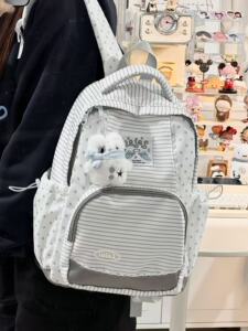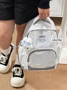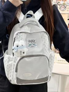 新款ins风简约大容量轻便双肩包条纹星星设计感背包百搭小众书包