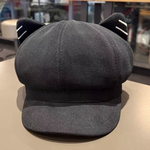 秋冬新款可爱卡通猫耳朵八角帽子女复古百搭显脸小贝雷帽潮画家帽