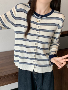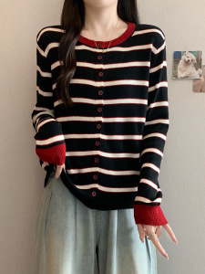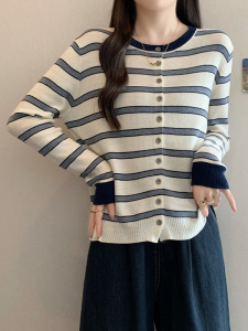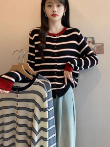 2025年秋装新款胖mm大码女休闲减龄撞色条纹软糯针织上衣