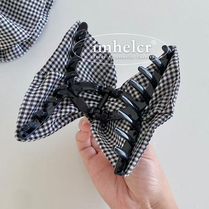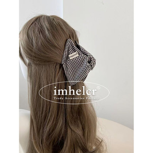 韩系甜美千鸟格子裙摆抓夹温柔百搭半扎发三角黑白鲨鱼夹发饰新款