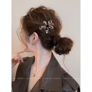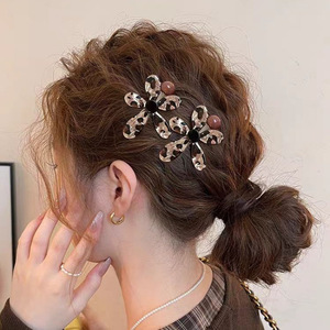 豹纹花朵圆珠发夹1个