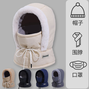 骑行雷锋帽女冬围脖一体百搭加厚保暖套头全脸防风骑车头盔帽子男