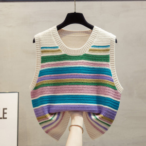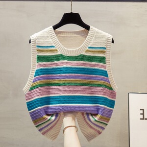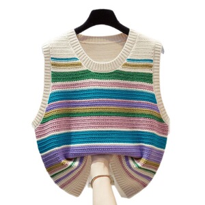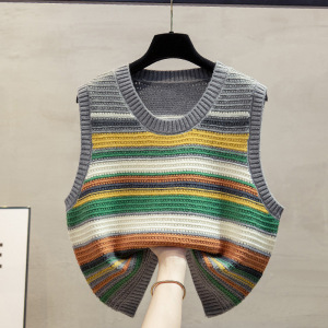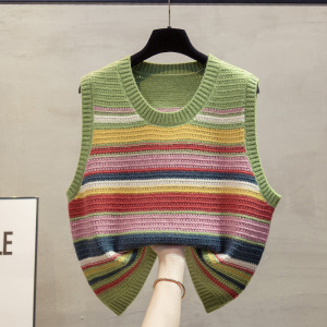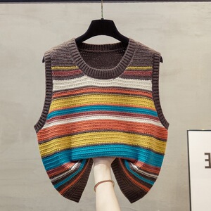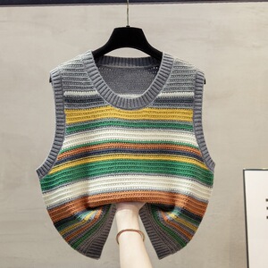 彩色条纹针织马甲坎肩女2025早秋冬新款宽松外搭叠穿毛衣背心女装