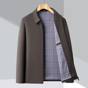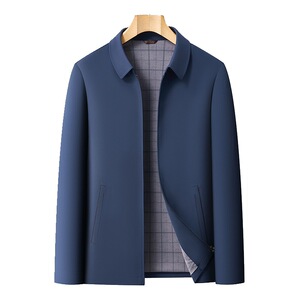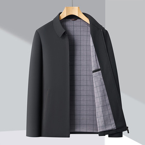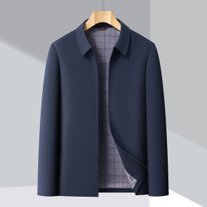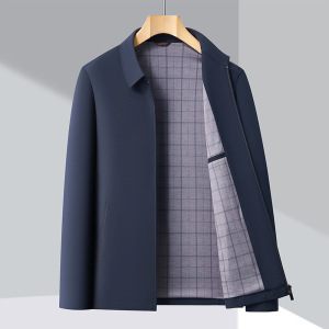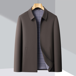 男士桑蚕丝夹克春秋季新款中年爸爸装休闲外套高级感翻领免烫上衣