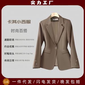 卡其色西装外套女2025时尚百搭轻熟风休闲高级感气质通勤小西服