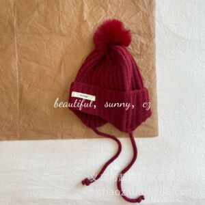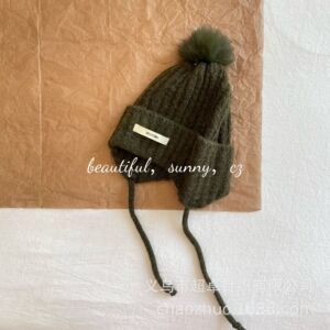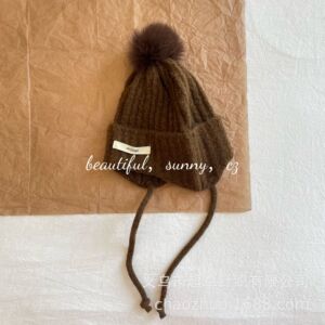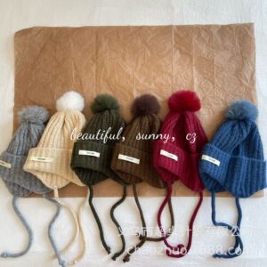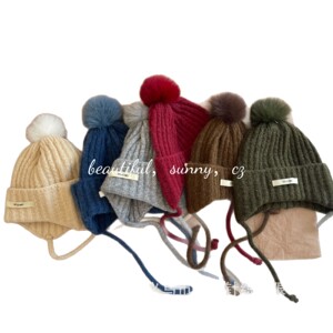 儿童帽子秋冬季2025新款女童球球毛线帽男童保暖冬帽