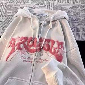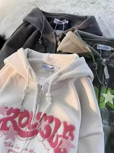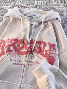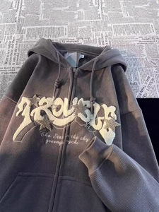 炸街牛角连帽夹克男女2025美式新款hiphop秋冬ins设计感开衫卫衣