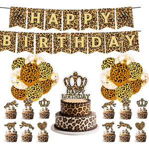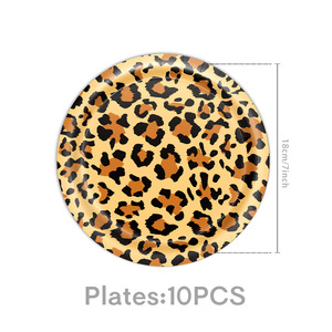 跨境热卖金色豹纹主题生日派对装饰餐具用品一次性纸盘拉旗四件套