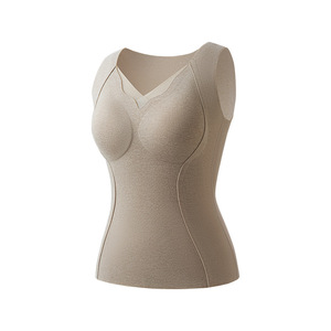 保暖背心女带胸垫一体式秋冬季加绒加厚打底防寒无痕修身内搭上衣
