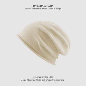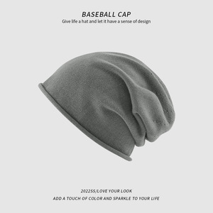 黑色堆堆帽女春秋日系针织月子帽时尚包头帽百搭网红卷边冷帽冬季