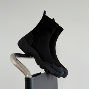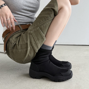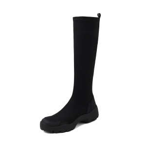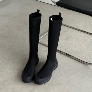 5CM时尚简约弹力瘦瘦靴女2025秋冬新款圆头厚底粗跟不过膝骑士靴