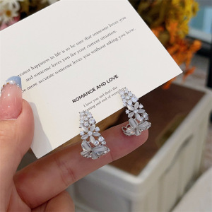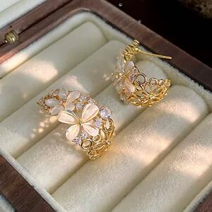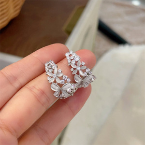 高级感琉璃花朵C型半圈耳钉简约时尚花朵耳环精致气质甜美耳饰女