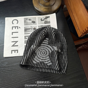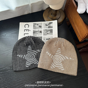 美式涂鸦条纹五角星针织帽男女街头保暖秋冬冷帽大头围百搭毛线帽