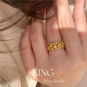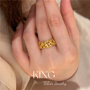 喜鹊登梅 | S925银镀金细腻拉丝喜鹊花朵复古新中式气质纯银戒指