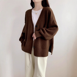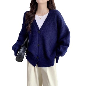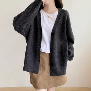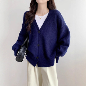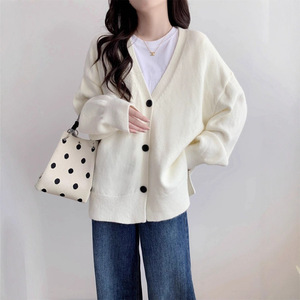 韩系外搭针织开衫外套女秋冬新款高级感单排扣V领慵懒风女装上衣