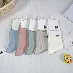 双针袜子女秋冬精梳棉中筒女士松口吸汗防臭学生棉袜诸暨袜业女袜