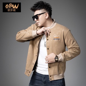 欧货卡其色秋冬新款外套男士棒球服潮牌轻奢刺绣夹克秋装男款上衣