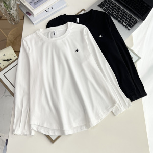 200斤胖妹妹秋季新款基础款刺绣褶皱袖口长袖打底衫大码上衣8214