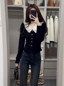 法式复古娃娃领泡泡袖上衣女小众设计感春季新款内搭打底衫高级感