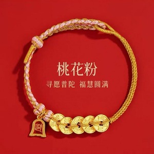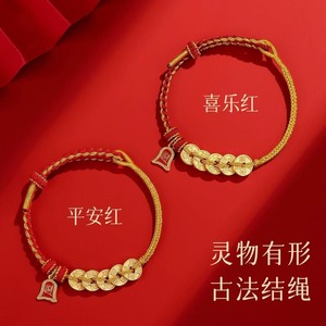 普陀山五帝钱红绳手链手工编织绳本命年小红绳仿黄金手绳男女礼物