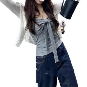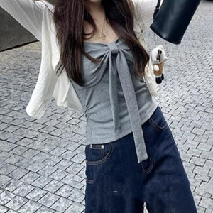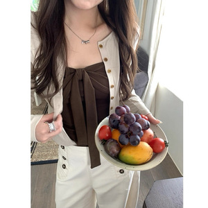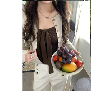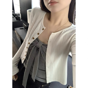 蝴蝶结设计吊带内搭背心+坑条针织开衫薄款短款外套