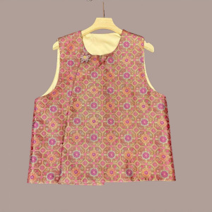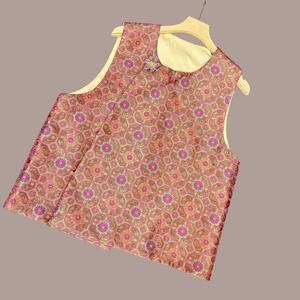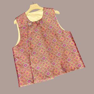 异色罗高端轻奢宋锦织锦提花无袖坎肩马甲女斜襟老钱风上衣