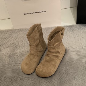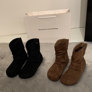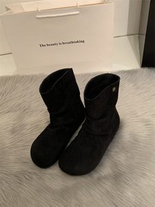 复古绒面褶皱堆堆靴女2025秋冬新款时尚马丁靴百搭内增高圆头短靴