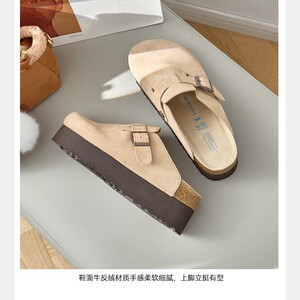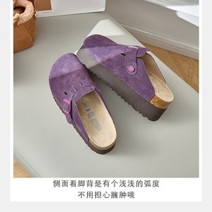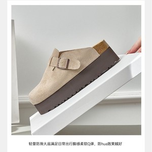 全牛皮7厘米勃肯鞋真皮包头拖鞋外穿松糕厚底增高复古一脚蹬博肯