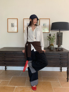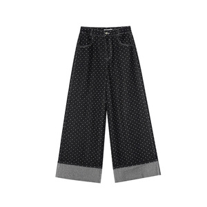 诠释美 NEWOPEN 25秋美式复古波点卷边高腰休闲直筒牛仔裤女F6717
