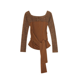 诠释美 NEWOPEN 25秋法式文艺复古一字肩系带长袖拼接针织衫F6715