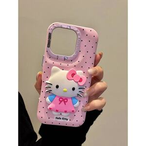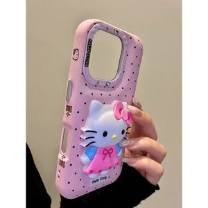 小香粉波点粉裙珍珠可爱猫咪硅胶适用iphone16promax苹果15手机壳