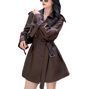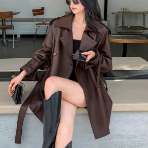 皮衣女中长款2025年春秋季新款韩版收腰显瘦流行机车外套风衣女