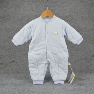 25年秋冬款宝宝夹棉哈衣卡通绣花绗绣打底无骨束脚婴儿爬爬服哈衣