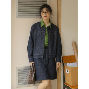 日系复古文艺圆领牛仔外套女长袖2025秋季新款单排扣休闲学生衬衫