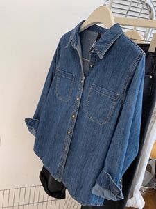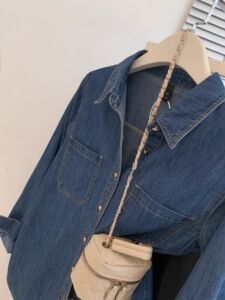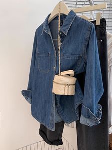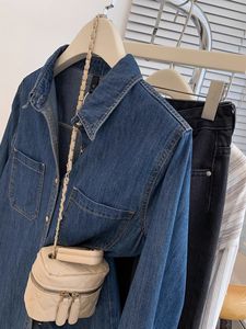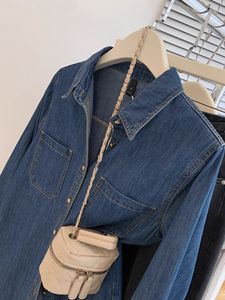 蓝色牛仔衬衫外套女小个子设计感长袖气质衬衣2025早秋季新款上衣
