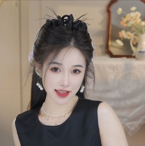 抖音布艺发饰【星空】新版缎面面料羽毛抓夹高级大气显发量发饰女
