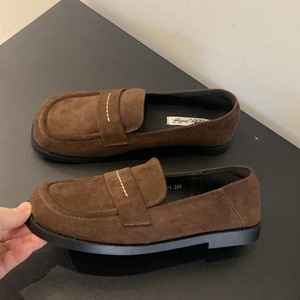 法式复古圆头单鞋女春秋新款韩版仙女风休闲通勤一脚蹬平底乐福鞋