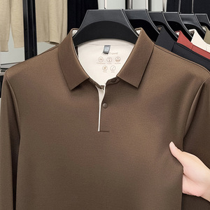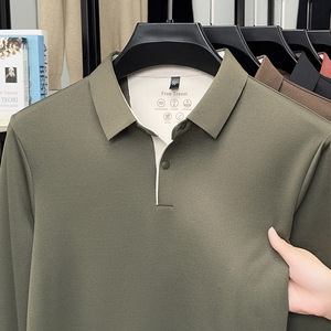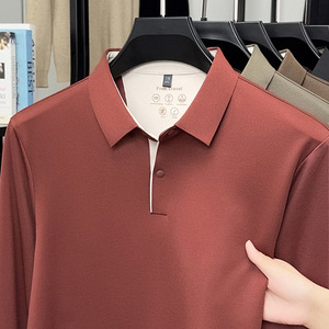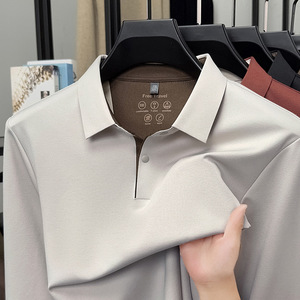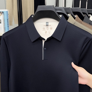 跨境春秋新款无痕长袖T恤男士高品质时尚百搭纯色翻领polo衫代发