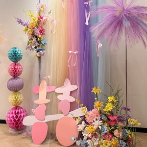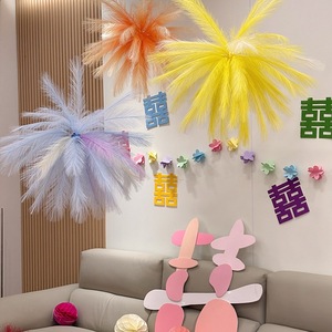 多巴胺芦苇烟花纱幔支架悬挂晨袍拍照背景布置装饰婚房订婚宴